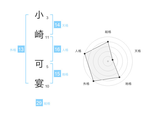 小崎 可宴さんを姓名の画数から五運を鑑定