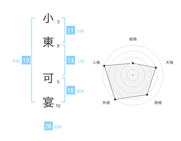小東 可宴さんの総格は26画の2点!