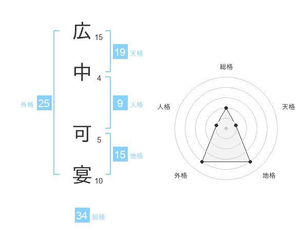 広中 可宴さんの総格は34画の2点!
