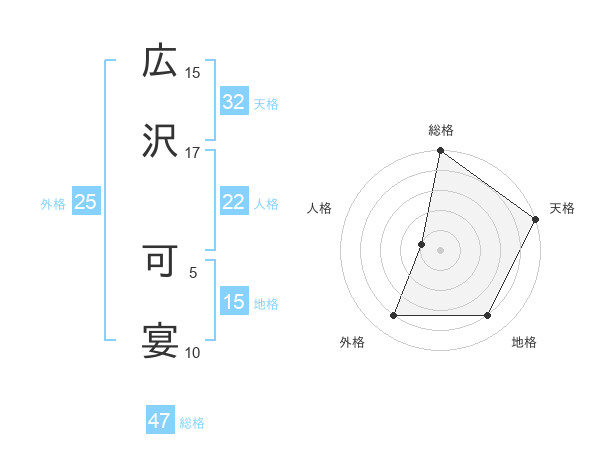 広沢 可宴さんの総格は47画の5点!