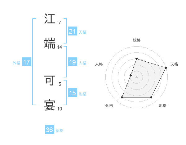 江端 可宴さんの外格は17画の4点!