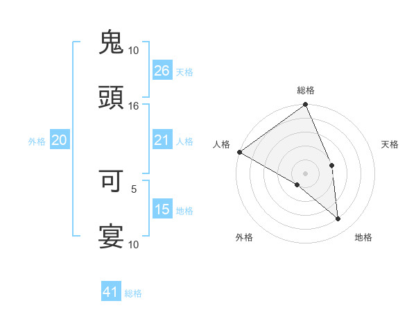 鬼頭 可宴さんの総格は41画の5点!