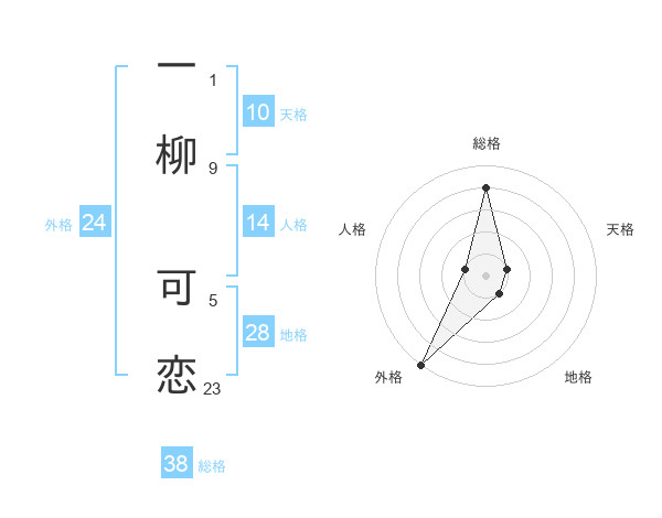 一柳 可恋さんの総格は38画の4点!