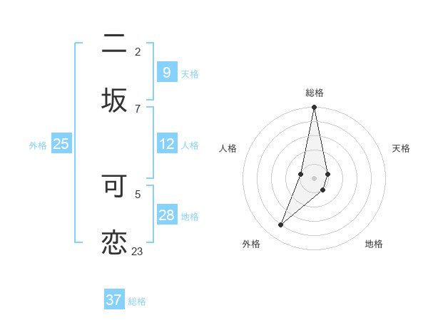 二坂 可恋さんを姓名の画数から五運を鑑定