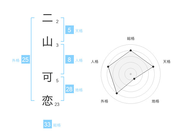 二山 可恋さんの外格は25画の4点!