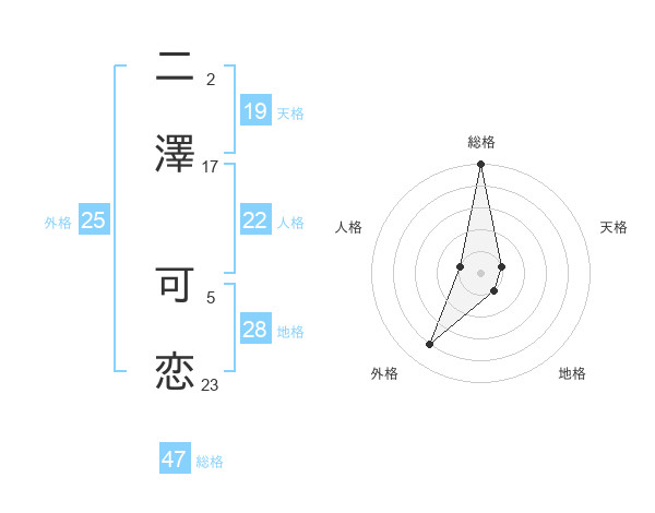 二澤 可恋さんの総格は47画の5点!