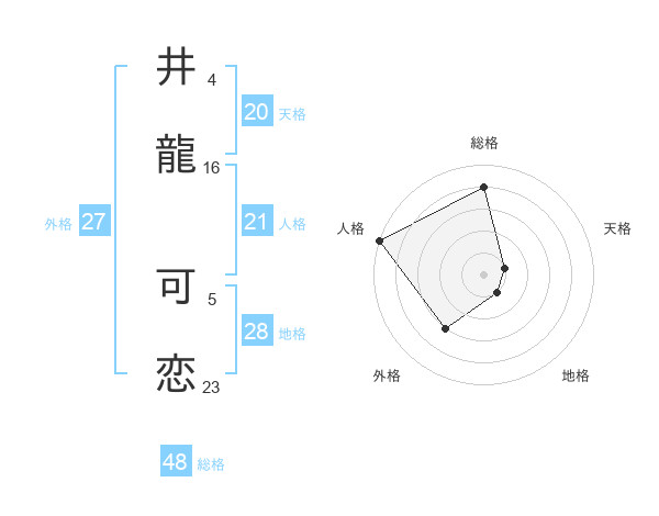 井龍 可恋さんの総格は48画の4点!