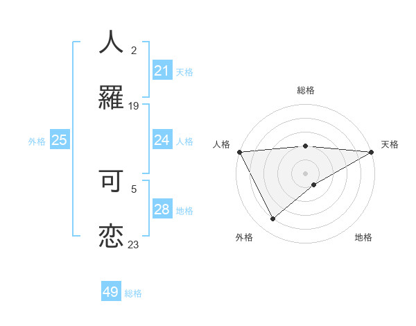 人羅 可恋さんの外格は25画の4点!