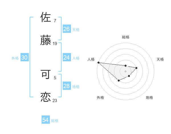 佐藤 可恋さんの総格は54画の1点!