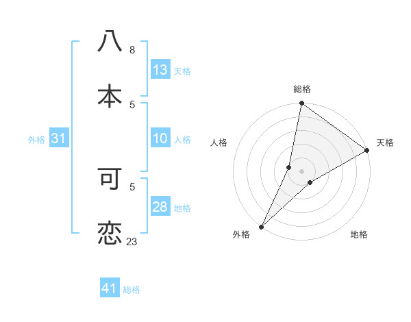 八本 可恋さんの総格は41画の5点!