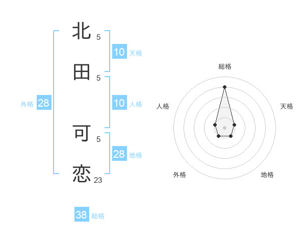 北田 可恋さんの総格は38画の4点!