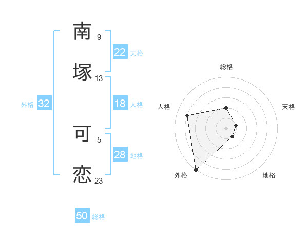 南塚 可恋さんを姓名の画数から五運を鑑定
