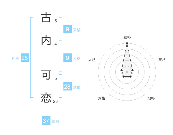 古内 可恋さんの総格は37画の5点!