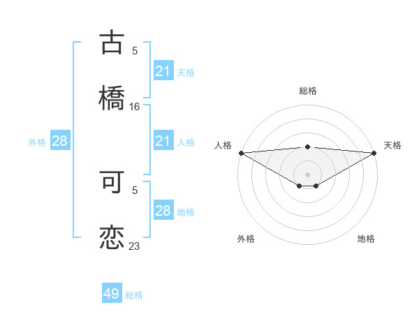 古橋 可恋さんの天格は21画の5点!