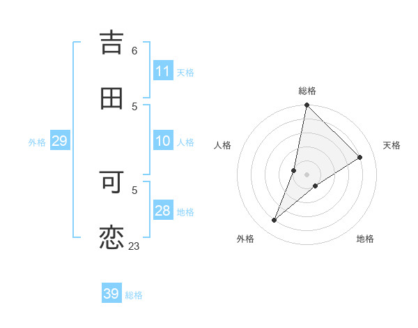吉田 可恋さんを姓名の画数から五運を鑑定