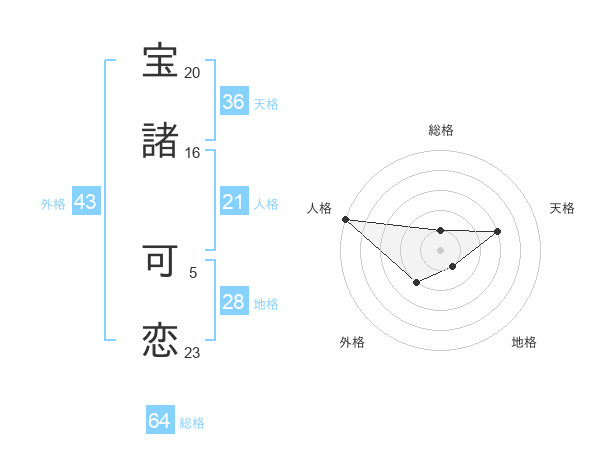 宝諸 可恋さんを姓名の画数から五運を鑑定