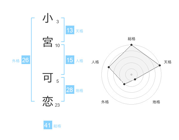 小宮 可恋さんを姓名の画数から五運を鑑定
