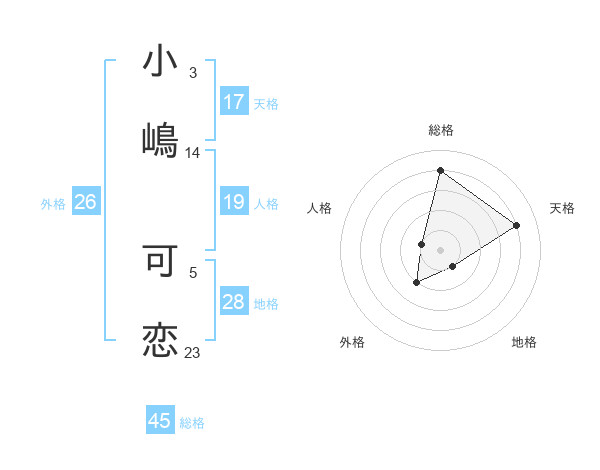 小嶋 可恋さんの総格は45画の4点!