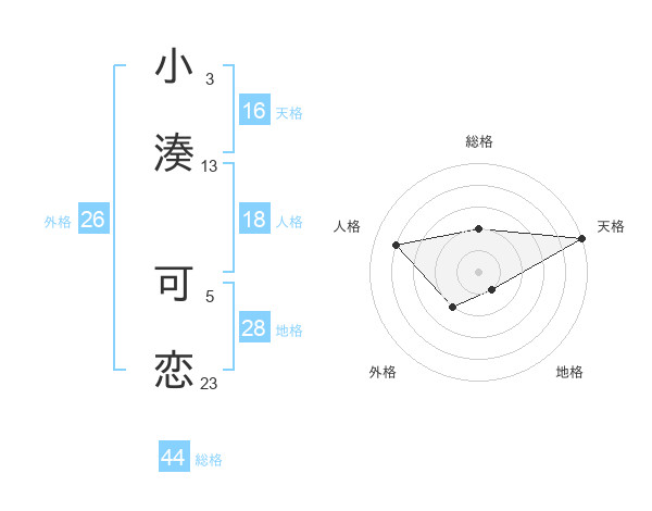 小湊 可恋さんを姓名の画数から五運を鑑定