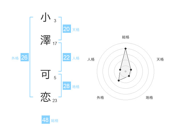 小澤 可恋さんを姓名の画数から五運を鑑定