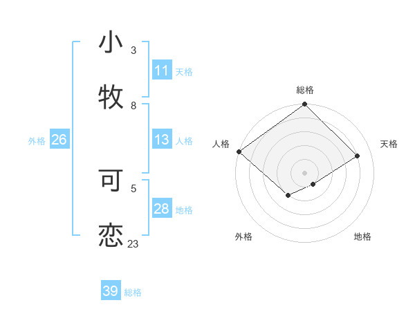 小牧 可恋さんの総格は39画の5点!