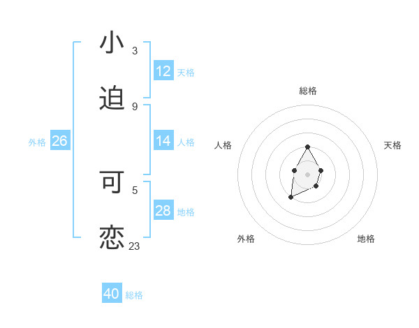 小迫 可恋さんを姓名の画数から五運を鑑定