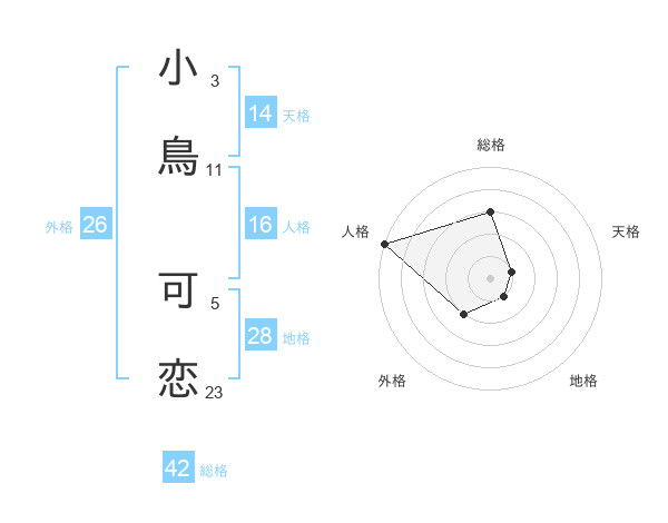 小鳥 可恋さんを姓名の画数から五運を鑑定