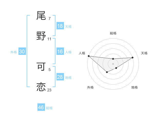 尾野 可恋さんを姓名の画数から五運を鑑定