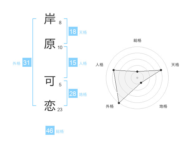 岸原 可恋さんを姓名の画数から五運を鑑定