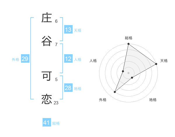 庄谷 可恋さんの天格は13画の5点!