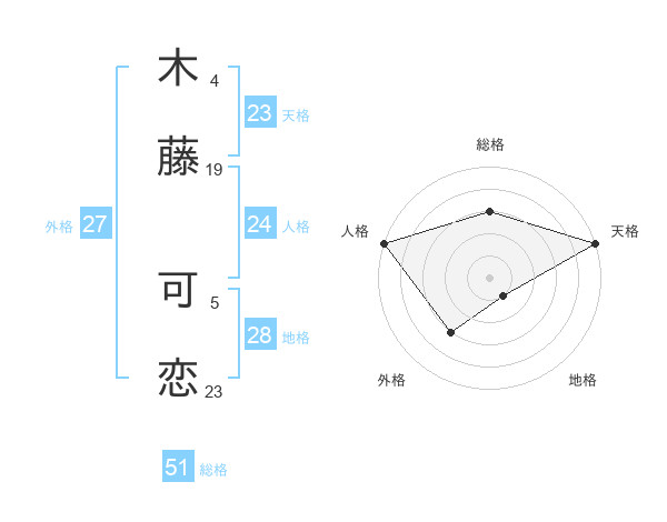 木藤 可恋さんを姓名の画数から五運を鑑定