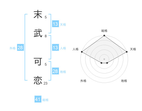末武 可恋さんの総格は41画の5点!