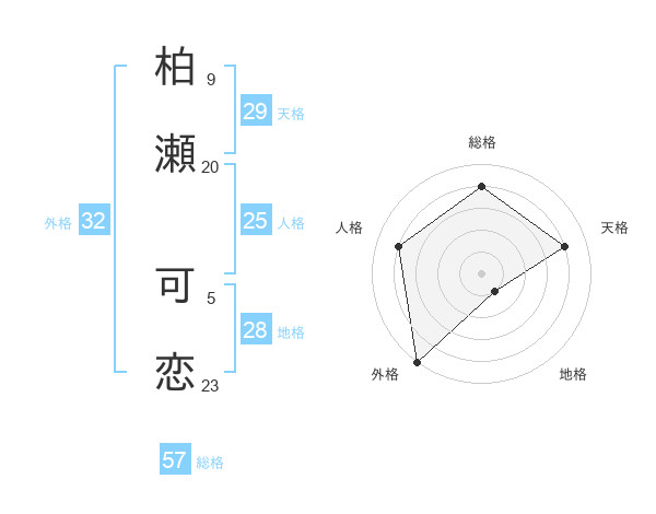 柏瀬 可恋さんを姓名の画数から五運を鑑定