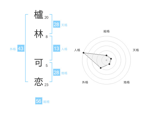 櫨林 可恋さんを姓名の画数から五運を鑑定