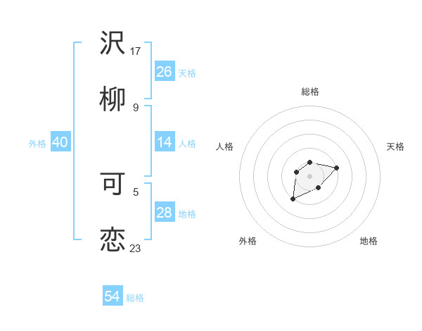 沢柳 可恋さんを姓名の画数から五運を鑑定