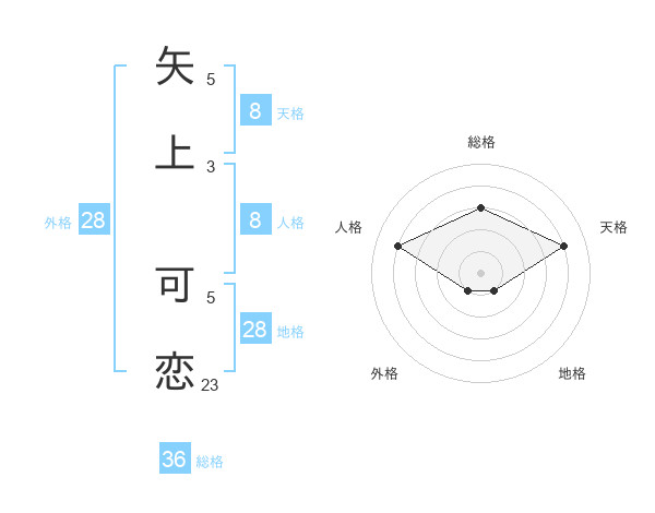 矢上 可恋さんを姓名の画数から五運を鑑定