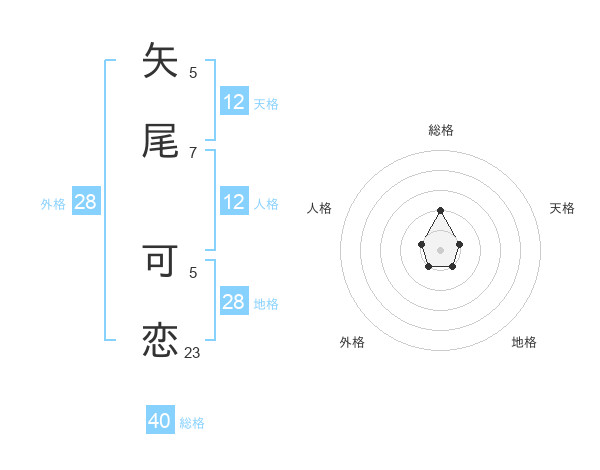 矢尾 可恋さんの地格は28画の1点!