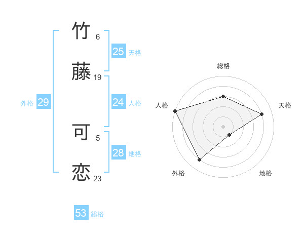 竹藤 可恋さんを姓名の画数から五運を鑑定