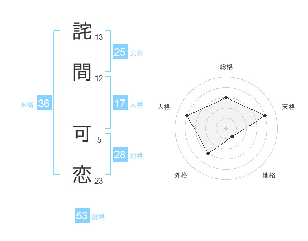詫間 可恋さんを姓名の画数から五運を鑑定