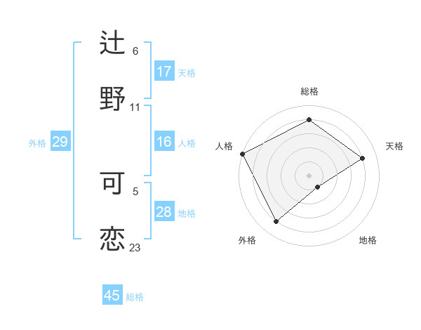 辻野 可恋さんの外格は29画の4点!
