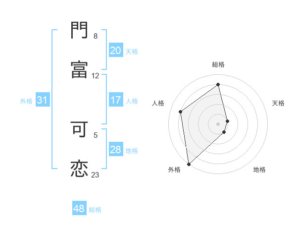 門富 可恋さんの総格は48画の4点!