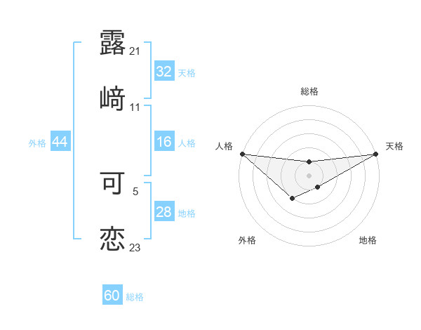 露﨑 可恋さんを姓名の画数から五運を鑑定