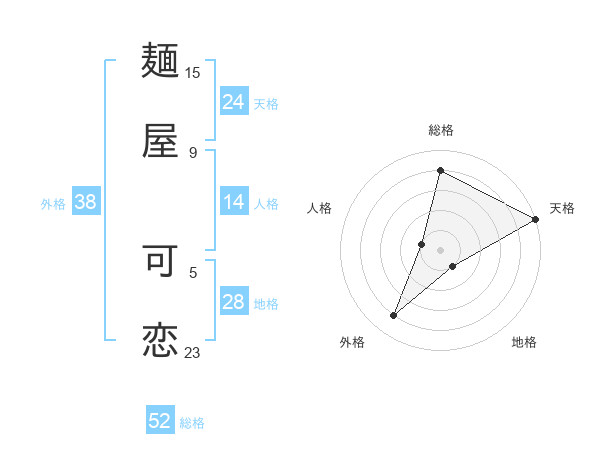 麺屋 可恋さんを姓名の画数から五運を鑑定