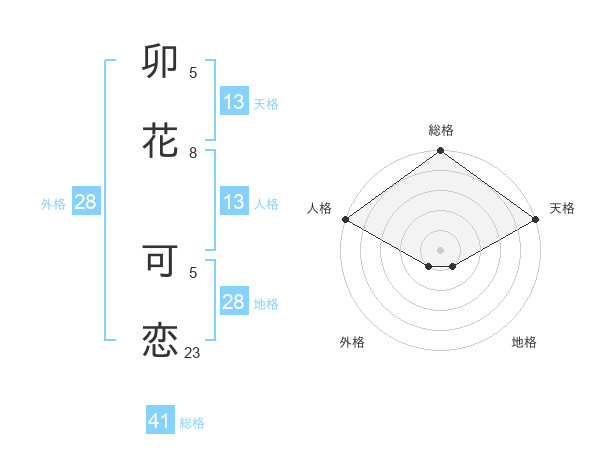 卯花 可恋さんを姓名の画数から五運を鑑定