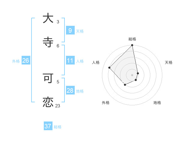 大寺 可恋さんの総格は37画の5点!