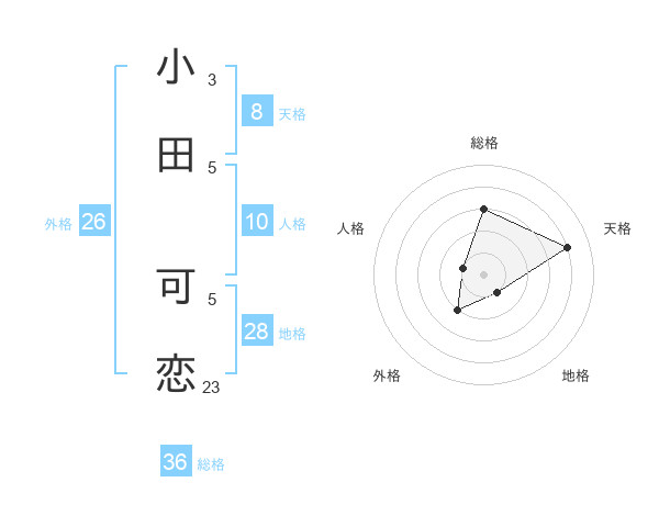 小田 可恋さんの天格は8画の4点!