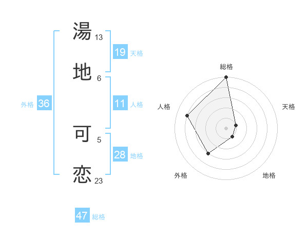 湯地 可恋さんの総格は47画の5点