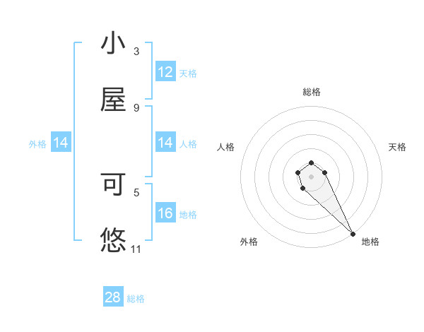 小屋 可悠さんの総格は28画の1点!