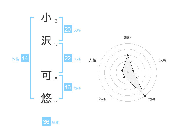小沢 可悠さんを姓名の画数から五運を鑑定
