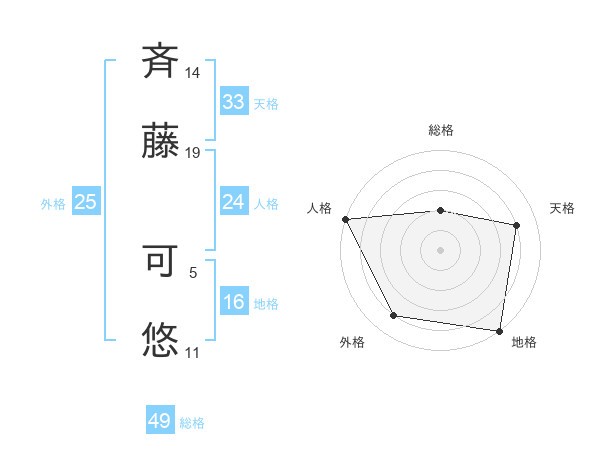 斉藤 可悠さんを姓名の画数から五運を鑑定